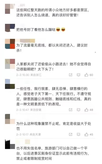 事实上,近年来网红私自前往禁区的报道屡见不鲜。 网友对此表示,真该好好管管了!