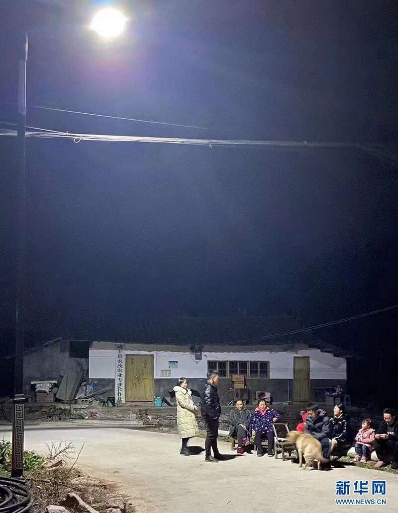 五龙坪村村民在明亮的路灯下相聚。新华网发