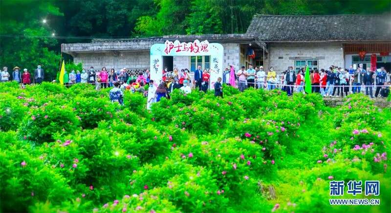 五龙坪村举办的咸丰县首届玫瑰花节,吸引近万人参观游玩。新华网发