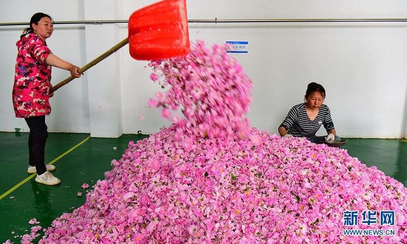 玫瑰花种植成为带动五龙坪村乡村振兴的支柱产业。新华网发 李维君摄