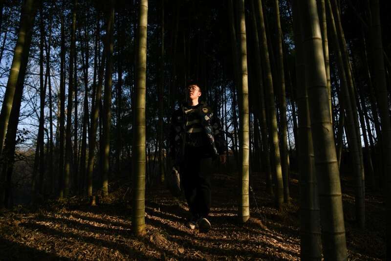 1月30日,郭昊走在安徽省六安市舒城县汤池镇的山路上准备进行无人机航拍。