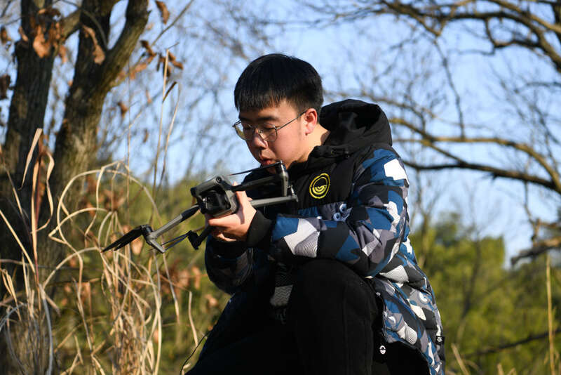 1月31日,郭昊在安徽省六安市舒城县汤池镇准备进行无人机航拍。