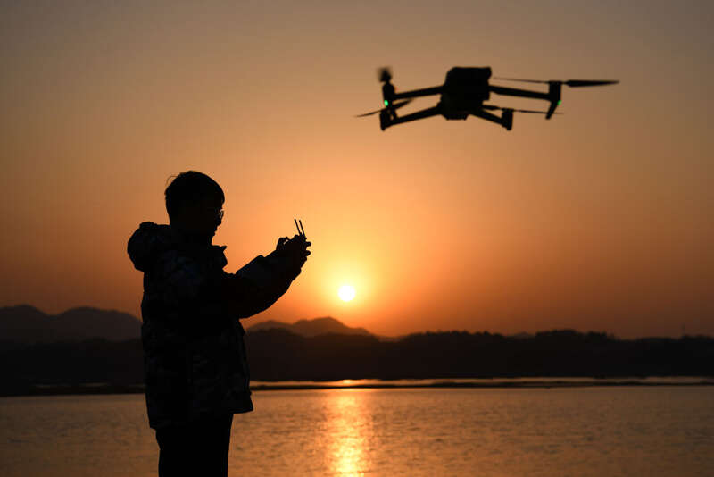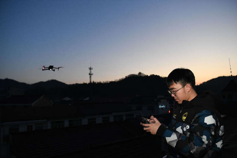 1月31日,郭昊在安徽省六安市舒城县汤池镇进行无人机航拍。