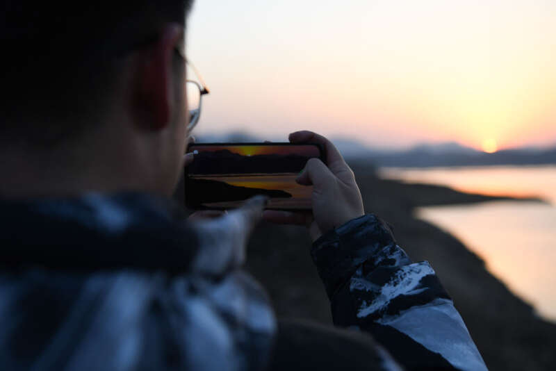 1月30日,郭昊在安徽省六安市舒城县汤池镇三江码头拍摄风景。