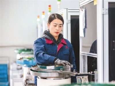 江苏鹰球集团有限公司是国家级专精特新“小巨人”企业,目前订单已经排到了3月份。图为2月3日,工人在该公司生产车间赶制出口海外的粉末冶金含油轴承订单。