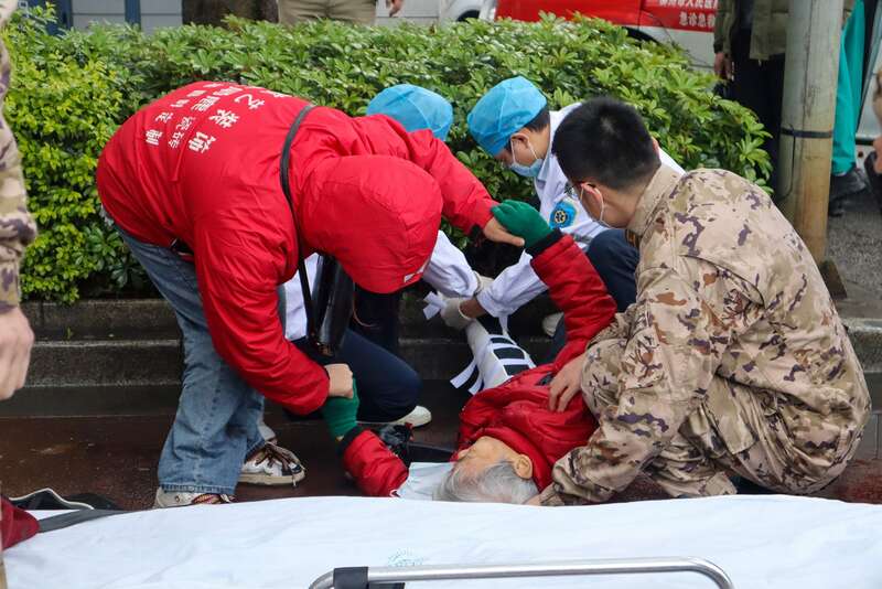 武警官兵参与现场救助受伤群众。宋伟健/摄