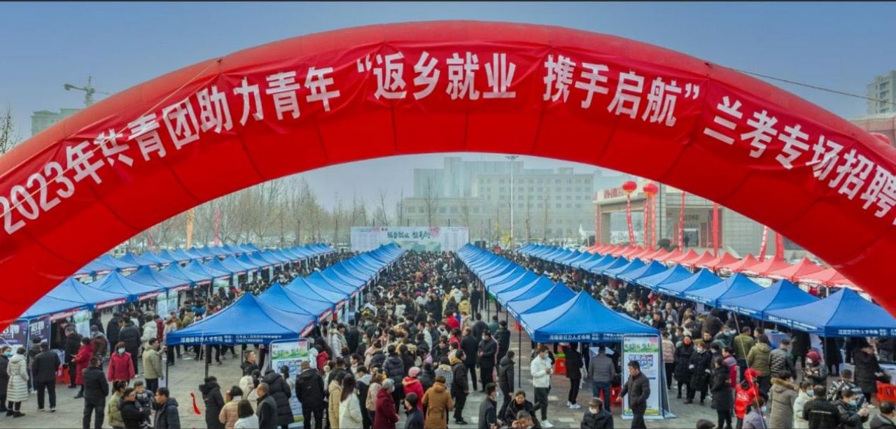 为贯彻落实党的二十大精神和中央经济工作会议精神,落实团中央等11部门联合开展的“春风行动暨就业援助月”专项服务活动,继续做好“六稳”“六保”工作,着力帮扶脱贫县推进乡村振兴,2月7日至2月8日,由中国青年创业就业基金会、共青团河南省委指导,河南省青年创业就业基金会、共青团开封市委、中共兰考县委、兰考县人民政府主办,共青团兰考县委承办的“2023年共青团助力青年“返乡就业 携手启航”兰考专场招聘会在兰阳湖南广场举办。