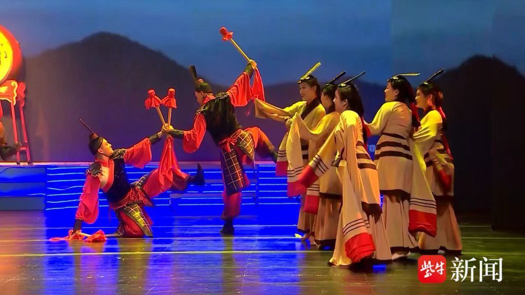 在不久前的睢宁县癸卯兔年春节联欢晚会上,由睢宁县博物馆、睢宁县柳琴剧团携手打造的大型文物活化舞蹈情景剧《汉俑如梦》首次登台亮相,依托于睢宁县博物馆馆藏的国家一级文物《东汉·舞乐车马图汉画像石》改编的这出舞剧获得了观众们广泛的好评,沉睡在画像石上的汉代女俑走到台前翩然起舞,让观众们瞬间穿越回千年前刘邦迎戚姬的盛大场面中。