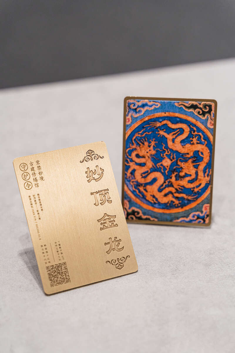 要进入这座沉浸式数字空间,体验者只需手持手机,打开“数字猫”App,轻轻触碰内嵌NFC芯片的古建修缮馆“妙顶金龙”黄铜守护令牌,即可用唯一识别身份激活令牌,跨越手机屏幕中虚实交融的“能量穿越门”,迈进按照1:1原尺寸大小所搭建的故宫养心殿“紫禁妙境”元宇宙。