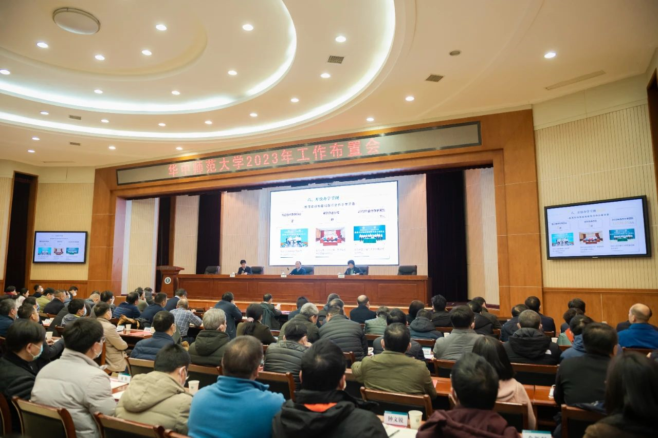 郝芳华代表校党委、校行政向全体师生员工致以新春问候,感谢大家在过去一年里的辛苦奉献。2022年,全体华师人众志成城、锐意进取、克难奋进,不仅圆满完成全年各项既定目标,还在以下方面取得了新突破——