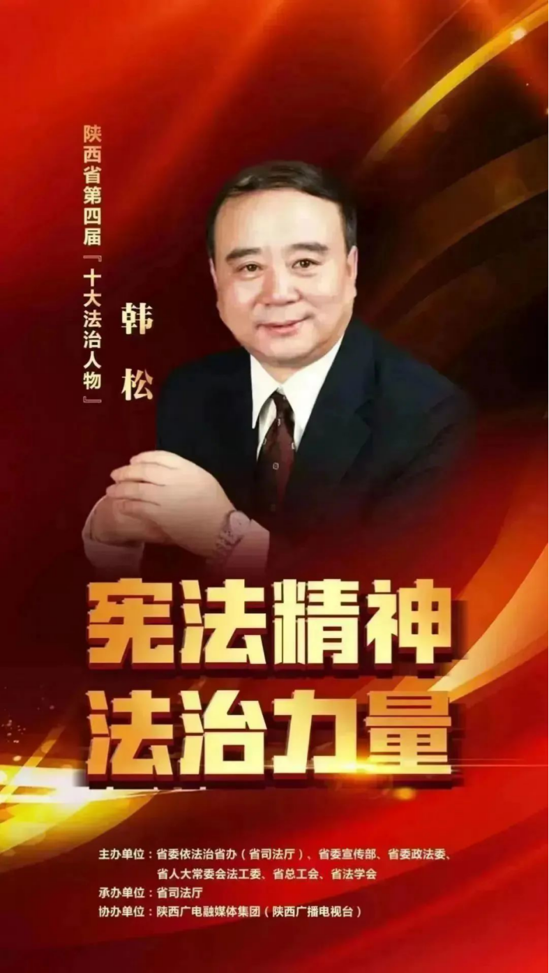 2月10日,陕西省第三届“十大法治事件”暨第四届“十大法治人物”发布仪式在西安举行。省委常委、省委政法委书记刘强,省人大常委会副主任李晓英,副省长、省公安厅厅长徐大彤,省政协副主席李兴旺出席并为获奖代表颁奖。西北政法大学二级研究员、学术委员会主任、学位评定委员会主席韩松教授当选陕西省第四届“十大法治人物”。