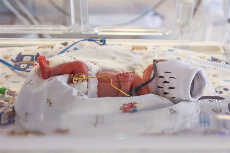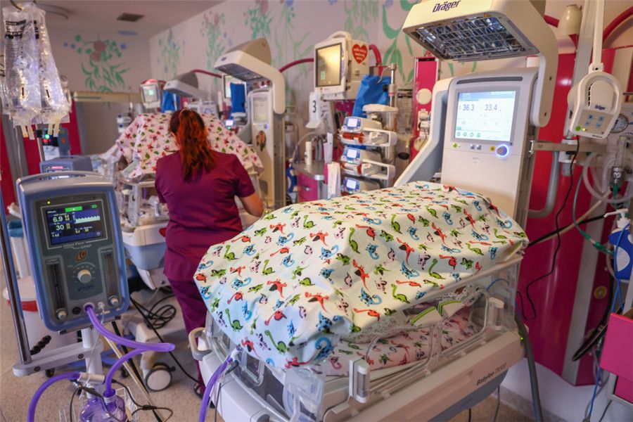 当地时间2023年2月14日,波兰克拉科夫,在波兰大学医院出生的五胞胎中,有一个在保温箱里。3个女孩和2个男孩在怀孕第28周时通过剖腹产出生。这对波兰裔英国父母已经有了7个年龄在10个月到12岁之间的孩子,其中包括两对双胞胎。统计数据显示,每5200万次怀孕中就会有一次是五胞胎。