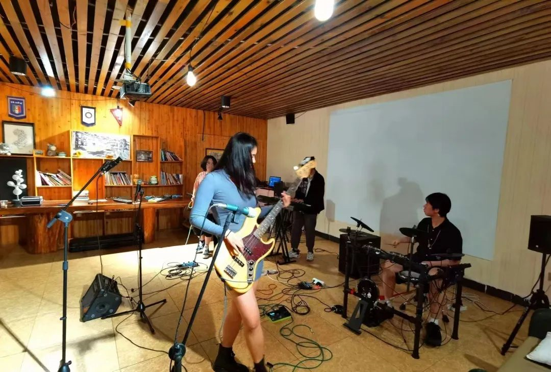 保持快乐始终是刘贝的生活准则。换下运动服,拿起心爱的贝斯或话筒,刘贝摇身一变成为聚光灯下的亮眼存在。作为校大学生艺术团成员,参与文艺演出20余场,在充斥着快乐因子的音符世界里,刘贝和乐队成员用热情感染着每一位现场观众。为什么选择加入学校的乐队,刘贝解释是因为对音乐的热爱以及学习过声乐的经历,“这就像理想与现实的一个过渡与桥梁”,如同乐队的名字“灰空间”,代表着连接室内与室外的廊下空间,这个空间便是刘贝释放压力、展现真实自我的“乌托邦”。对于当时既要体育训练,又要兼顾科研项目的刘贝来说,乐队排练和演出无疑占据了大量时间,但她仍然甘之如饴,甚至一天只睡三四个小时也要坚持练琴,因为在与音乐的交流中她真切地感受到快乐,在这里,没有奖项,没有头衔,刘贝只是刘贝。