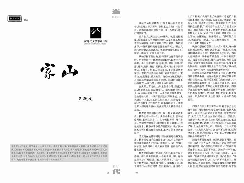 王跃文:创作《家山》最初的动因是我读了族谱。1998年,我族里的《三槐堂王氏族谱》成书,我奉长辈之命给族谱写了一个序言。大概十年前,我重新翻阅族谱,读到先辈修水利工程的故事,读到先辈倡办新式小学的故事,读到1949年祖父辈、伯父辈参加“湘西纵队”拉起革命武装迎接解放的故事,我很激动。