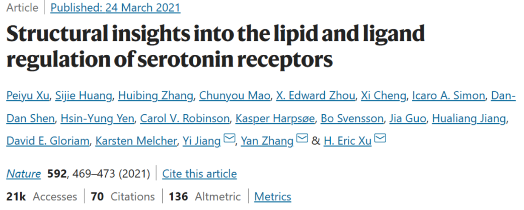 血清素,又名5-羟色胺 (5-HT),是一种可以产生愉悦情绪和幸福感的信使分子,因此也被称为“快乐激素”,其在人体内含量的变化常常与情绪的变化有关,比如血清素的缺乏会导致抑郁的发生。 但血清素是如何让人产生幸福感,抗抑郁药物如何通过血清素受体系统发挥作用,可否根据以上信息设计更安全有效的抗抑郁药物?这些生物学过程和药理学机制一直亟待破译。