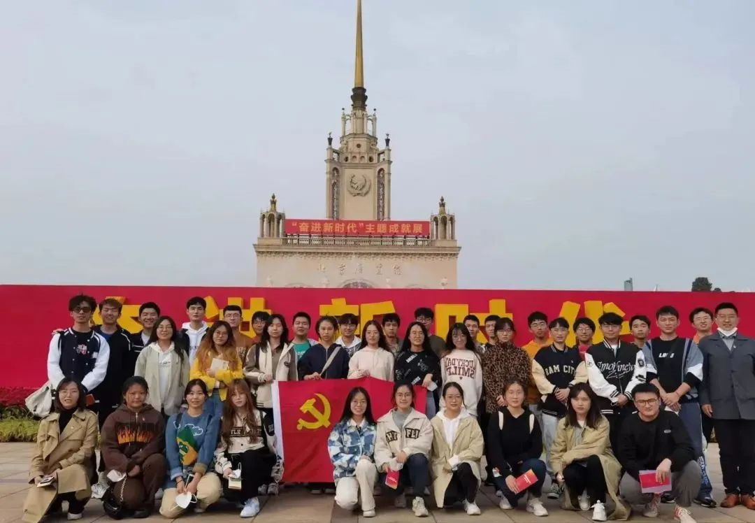 参观“奋进新时代”主题展(第二排左六为受访者)