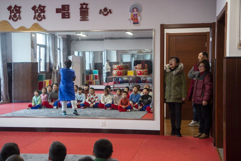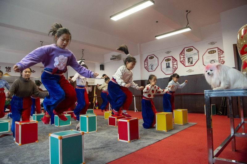 2023年2月18日,江苏省南通市,海安市城东镇西场小学六年前成立“和润京䪨”京剧社团,邀请专业剧团的老师,利用双休日来校给孩子们教授京剧课程,让孩子们从小感受国粹魅力。
