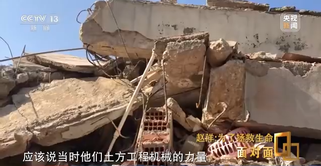 赵洋:应该说当时他们土方工程机械的力量在对这些建筑进行剥离,在剥离过程当中他们可能发现了一些迹象,而我们中国救援队正在这个区域救援,所以我们第一时间到达这个地方,我们第一时间开展了我们的生命探测。