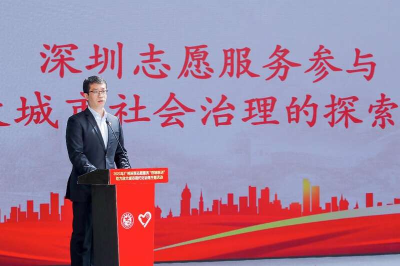 中国青年报客户端深圳讯(中青报·中青网记者 武欣中 实习生 舒骞)由广东省文明办、团广东省委主办的2023年广州深圳志愿服务“双城联动”助力超大城市现代化治理主题活动日前在深圳举办。来自广州、深圳、佛山、东莞志愿服务相关工作负责人及志愿者代表共70余人参加现场活动。各地市团委志愿者工作负责人和志愿者骨干通过网络直播方式参与,累计吸引超万名志愿者在线收看。