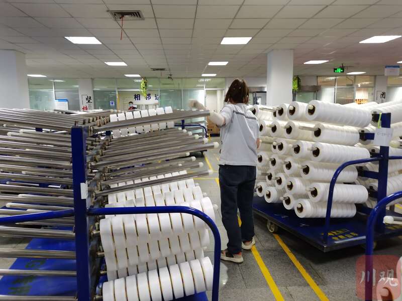 在位于涪陵区白涛新材料科技城的重庆华峰新材料产业园,华峰重庆氨纶有限公司生产的氨纶产品同样产销两旺,工人们将一卷卷氨纶打包装箱,销往全国各地。