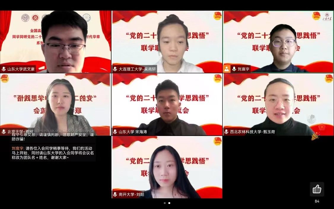 “党的二十大精神学思践悟”全国高校青年宣讲团联学联讲活动在云端举办。(图片由共青团山东大学委员会提供)