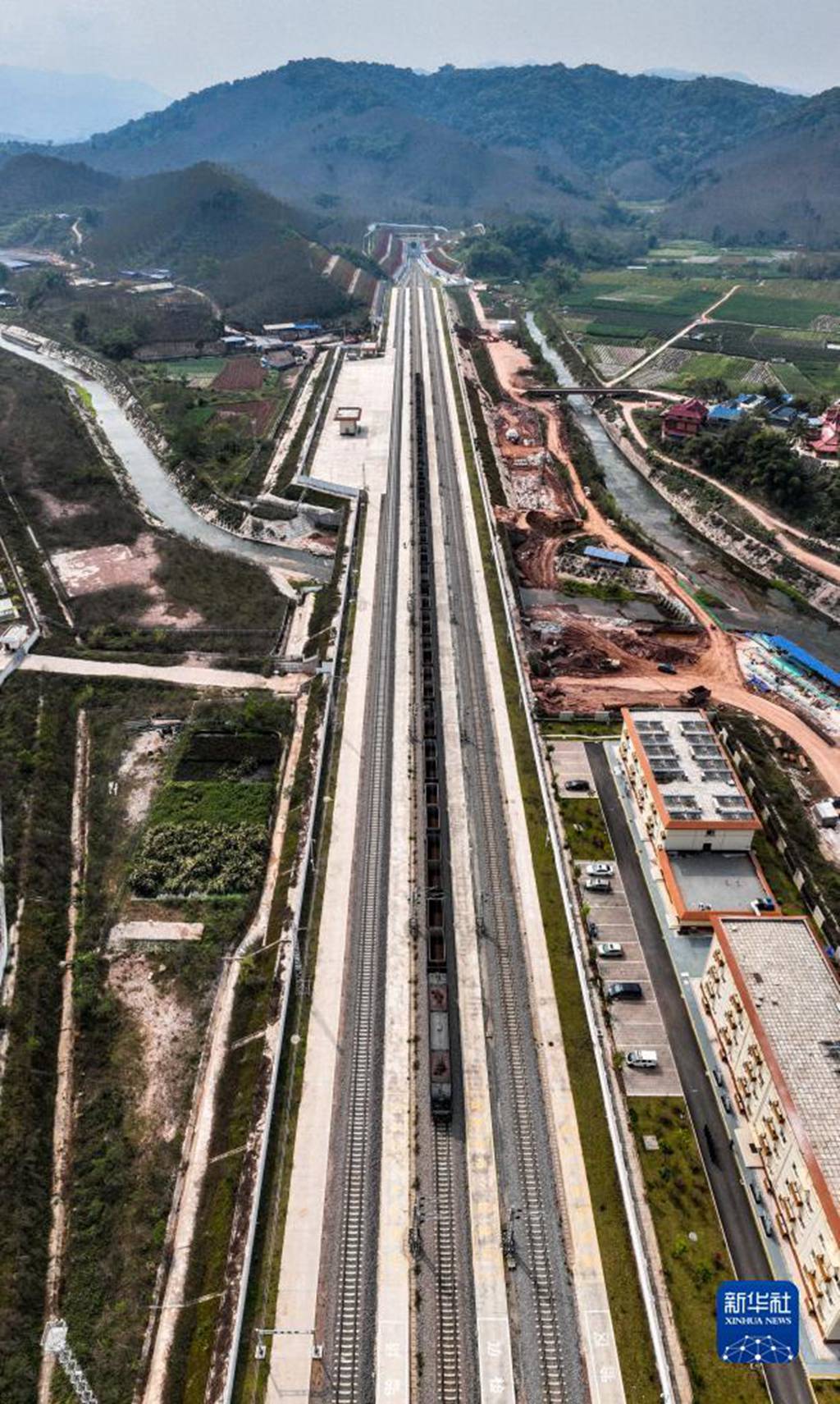 2月22日拍摄的中老铁路磨憨站(无人机照片)。