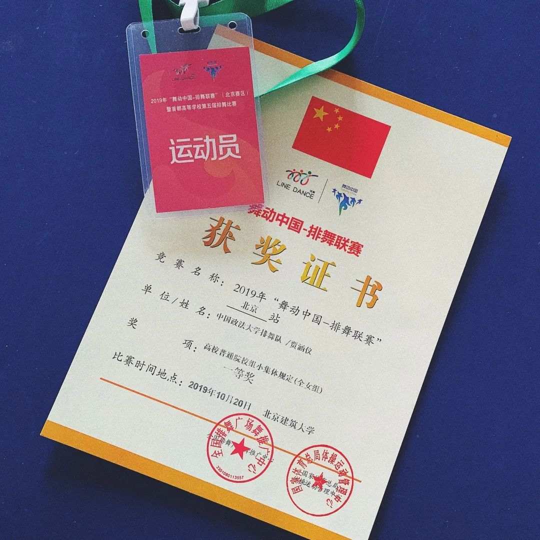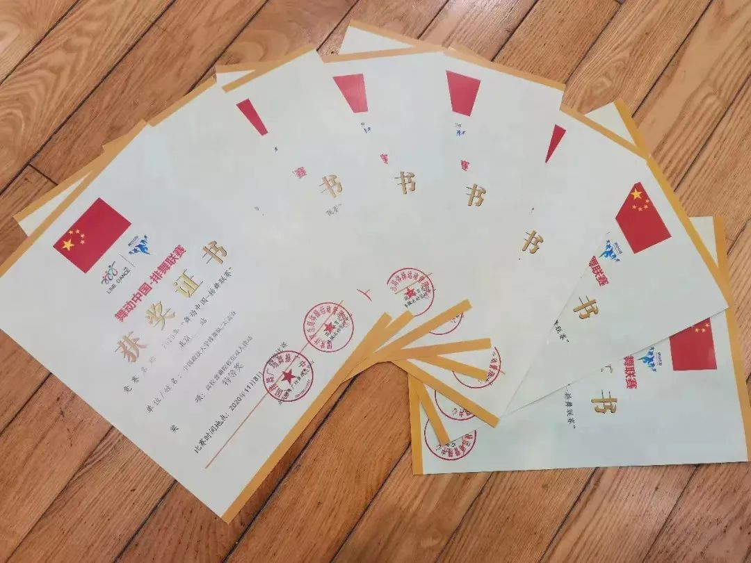 获得北京市大学生舞蹈节银奖;2019年“舞动中国-排舞联赛”北京站小集体组一等奖;2020年福摩杯“舞动中国-排舞联赛”全国总决赛单人组二等奖;2020年“舞动中国-排舞联赛”北京站单人组一等奖;2021年“舞动中国-排舞联赛”线上总决赛单人二等奖;2021年“舞动中国-排舞联赛”北京站单人组特等奖。