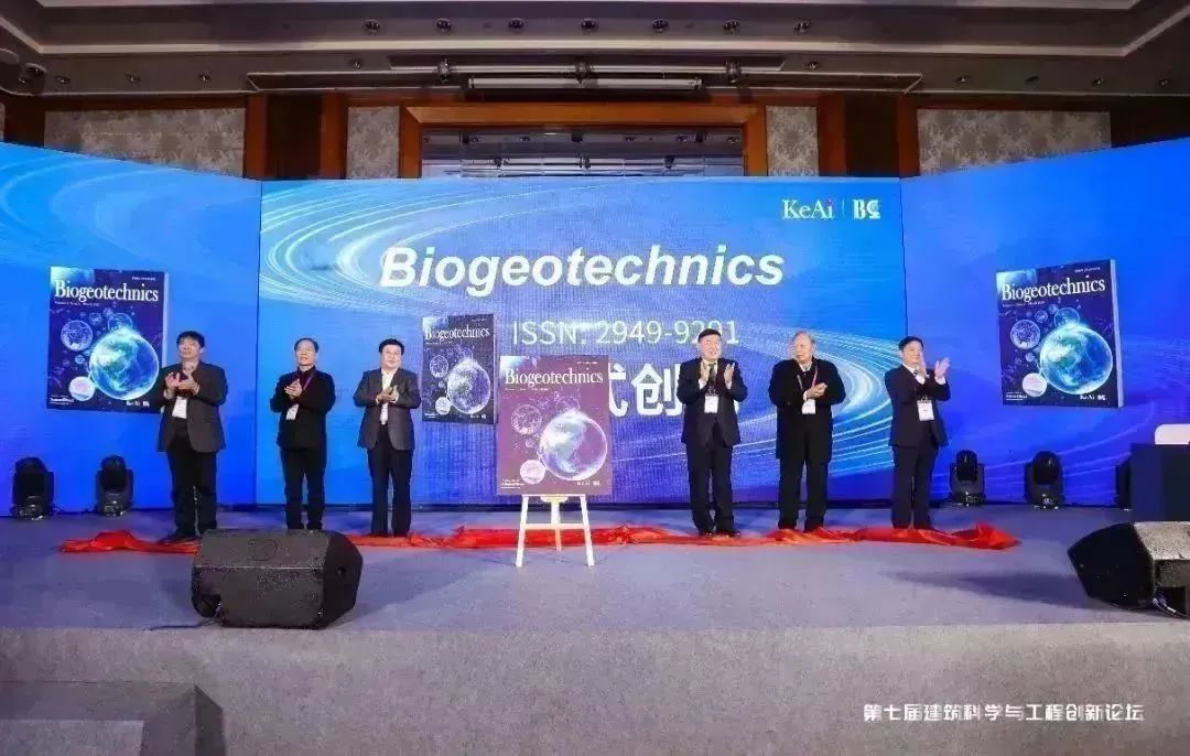 中国工程院周绪红院士、郑颖人院士、王复明院士、陈湘生院士、杜修力院士和中国工程院三局高战军局长共同为期刊揭幕,Biogeochenics正式创刊。