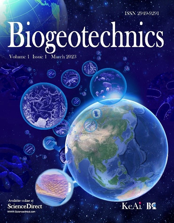 Biogeotechnics(中文刊名:生物岩土技术(英文),ISSN 2949-9291)是由重庆大学主办,与国际著名出版商KeAi合作出版的专业学术期刊。Biogeotechnics定位国际一流期刊,由美国工程院院士、亚利桑那州立大学Edward Kavazanjian教授担任名誉主编,重庆大学刘汉龙教授和新加坡南洋理工大学Jian Chu教授担任主编,来自中国、美国、新加坡、英国、澳大利亚、德国、日本等二十多个国家和地区的70位业内顶尖学者与年轻学科骨干组成编委会。Biogeotechnics聚焦地球科学、生物科学、工程技术、材料科学、物理学、化学、资源与环境科学等领域交叉融合研究,发布最新的关于生物矿化菌群激发与培育、生物矿化机理、生物岩土仿生原理、生物岩土材料特性、生物固化岩土与地基工程特性以及液化灾害防治、文物保护、沙漠修复、土壤/水污染治理、碳封层等领域相关研究进展及工程实践成果,致力于为来自不同背景和学科的研究人员提供一个专门的学术交流平台,及时发布新想法、新方法和新发现。