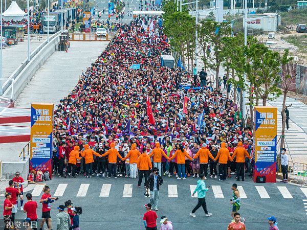 2023年2月26日,广东珠海,横琴马拉松鸣枪开跑,来自粤港澳大湾区的超万名跑者参与激烈角逐。最终,来自贵州的岑万江以2小时14分56秒获得全马男子组冠军;来自山东的陈为芬以2小时41分52秒的成绩夺得全马女子组冠军。