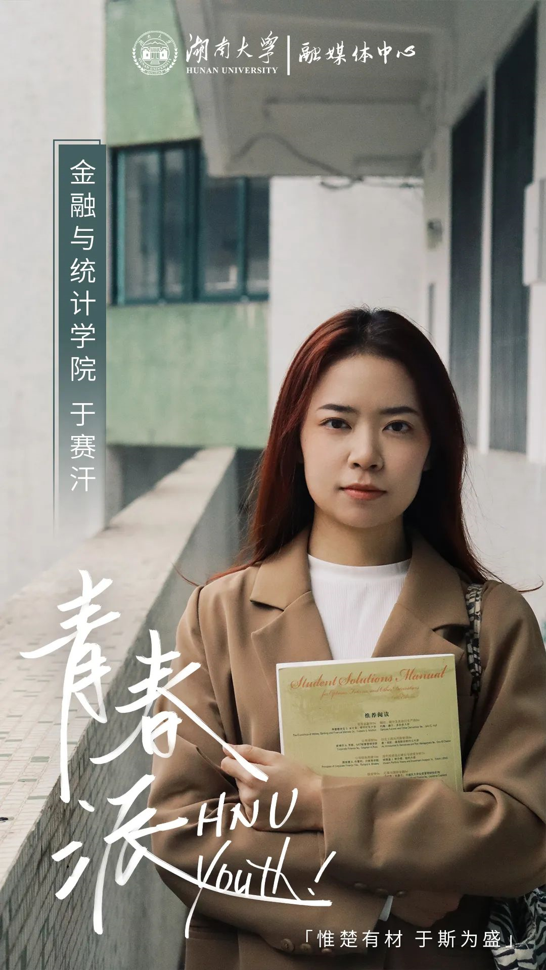 湖大人的青春是什么模样?在湖大,有多少个正值青春的学子,就有多少种灿烂的青春模样。“青春派”人物专栏,今日和你一起了解金融与统计学院2019级本科生于赛汗的故事。