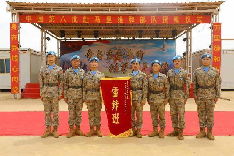 执行第八批赴马里维和任务的“雷锋班”副班长叶子贵与战友们参加授勋仪式