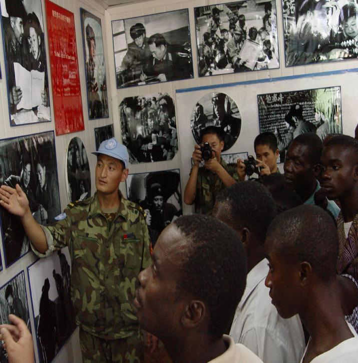“雷锋班”所在连队部分官兵赴利比里亚维和时,在驻地建起雷锋事迹展室