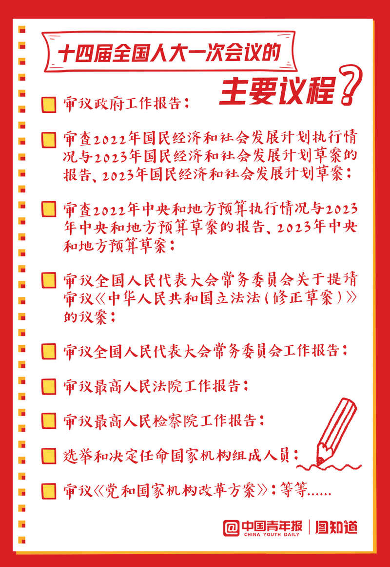 第十四届全国人民代表大会第一次会议将于今年3月5日召开。今年是全面落实党的二十大精神的开局之年,此次全国两会也是党的二十大召开之后首次举行的全国两会。新征程上,如何开新局、起好步?跟着图解,一起了解这些与老百姓息息相关的小知识。