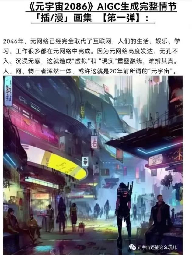 就在前几天,当代艺术家王睿在高泽龙小说《元宇宙2086》的基础上也创作了一部AIGC生成完整情节的漫画,通过训练AI模型形成艺术家想要的风格,将小说文本转化为可视的图像,画面色彩绚烂,非常富有想象力。