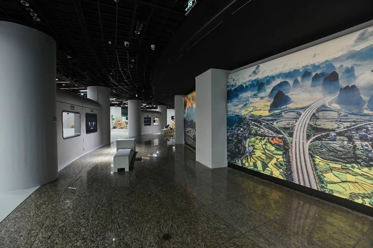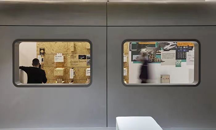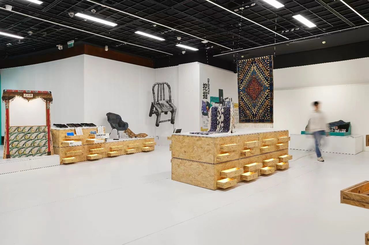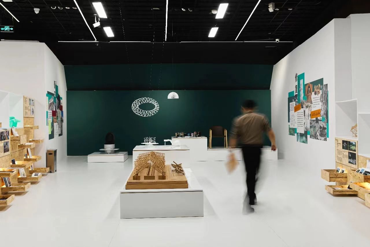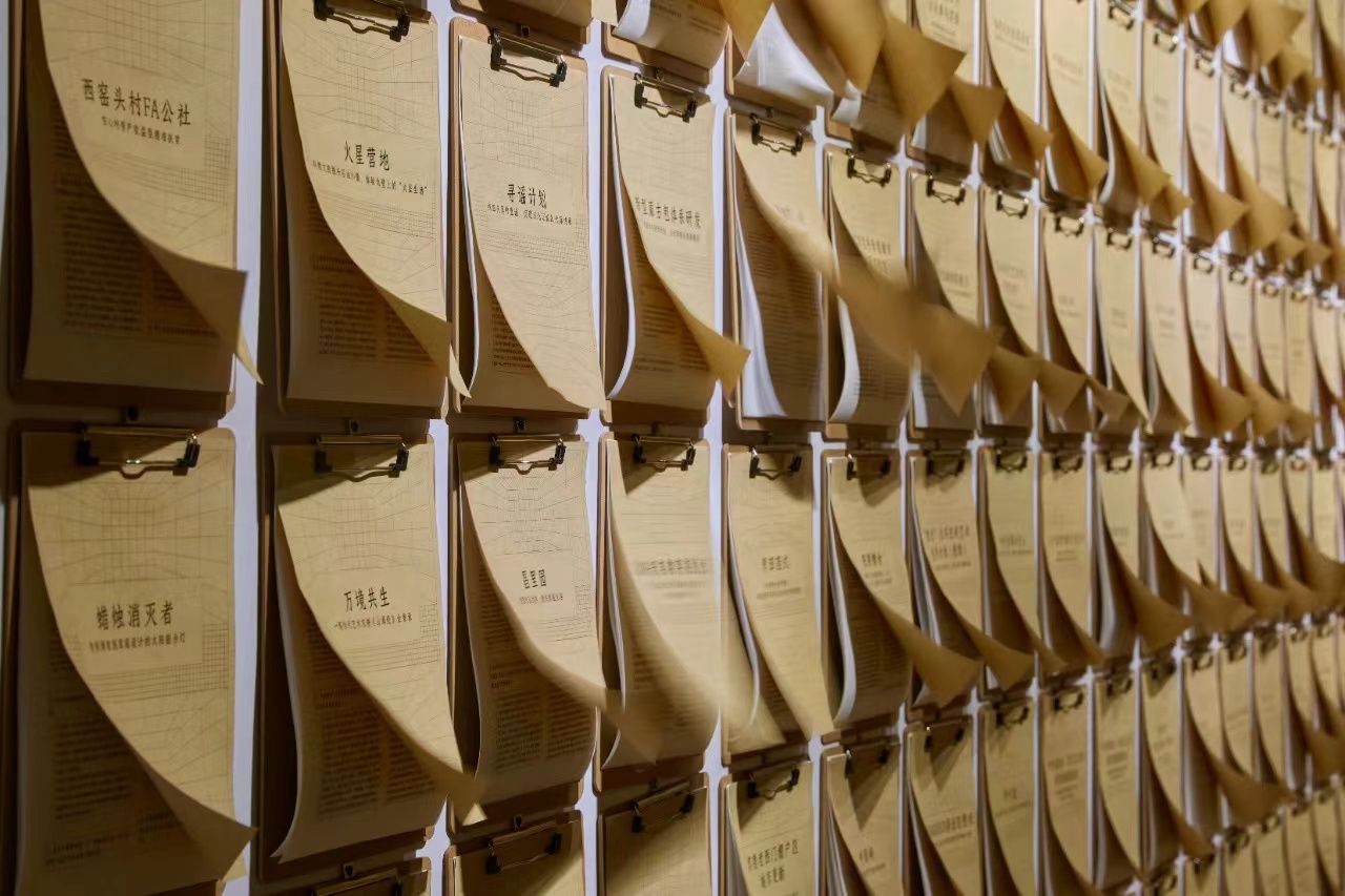 展览分“生态”“乡村”“社区”“数字”及“未来提案”五个主题板块,并推出“从乡土学院到美丽中国”特别单元,展品涵盖⽂献资料、影像视频、装置等。展厅空间营造出象征调查旅程的“车厢”与“站台”意向,圆环的参展路线,如同一辆在行进中的列车,带领着观众从一个田野奔向另一个田野,对在地实践进行田野调查。一个个车厢以及一个个抽屉,承载的是全国首个“美丽中国案例文献库”,一页页田野工作笔记本提炼出众多实践的行动策略。历史的列车串联时空,带我们目睹现代化掀起的巨变,穿越实践者的“田野”,也同时将当下与未来,此方与彼方互相联通。