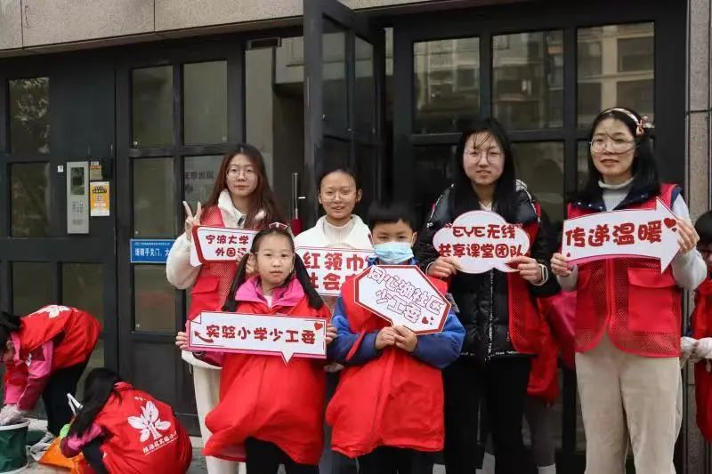 3月1日,外国语学院EYE无线共享课堂团队在宁波市镇海区同心湖社区开展“传承雷锋精神,弘扬志愿新风”志愿服务活动。团队成员王涵同学以生动有趣的形式向镇海区实验小学少工委的孩子们讲述了雷锋事迹、雷锋精神。团队成员穿红色志愿马甲,带着大大小小的工具,擦玻璃、捡烟头、沿河清理白色垃圾等,一抹抹志愿红,一个个大手牵小手,成为社区一道传播雷锋精神的靓丽风景线。
