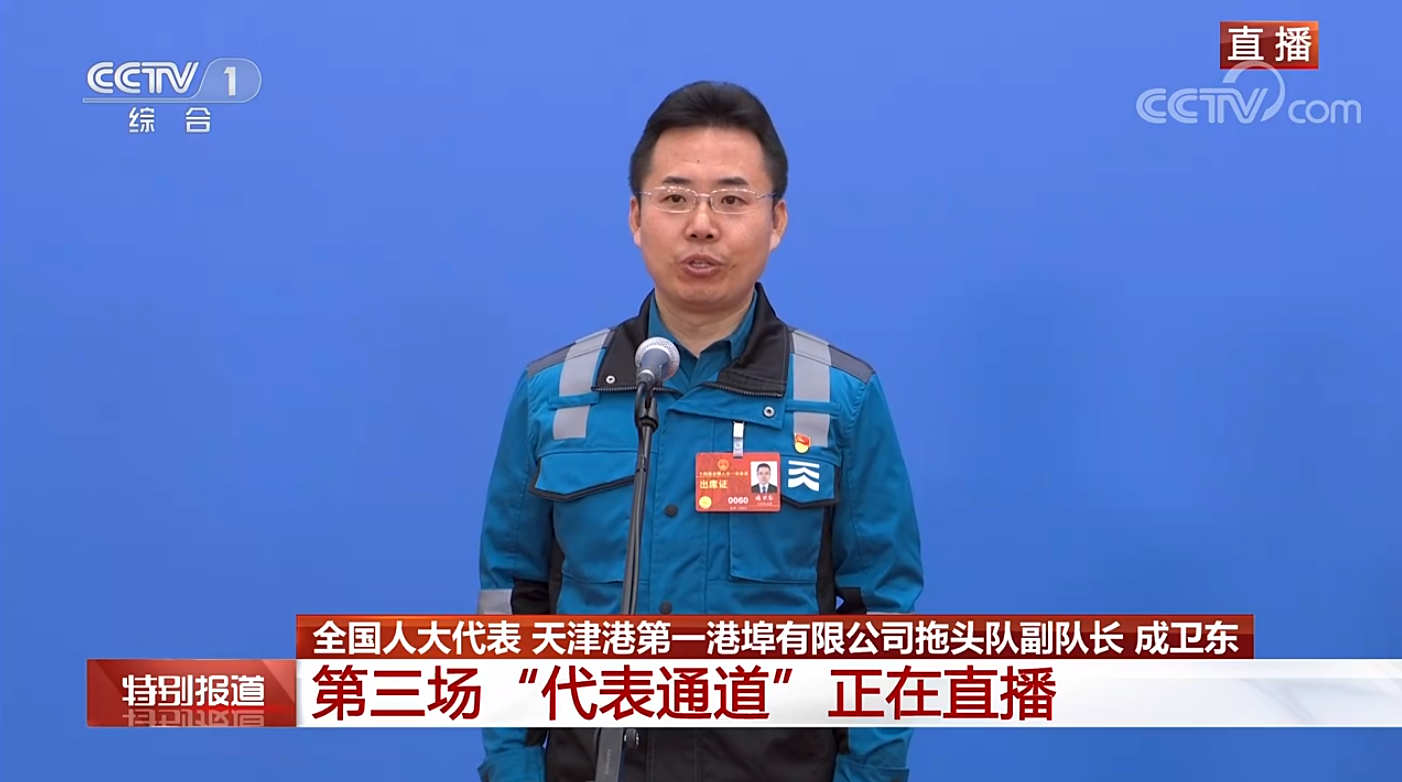 中国青年报客户端北京3月12日电(中青报·中青网记者 王豪 张艺 刘尚君)在3月12日上午召开的十四届全国人大一次会议第三场“代表通道”上,全国人大代表、天津港第一港埠有限公司拖头队副队长成卫东说,中国式现代化离不开产业工人的现代化。