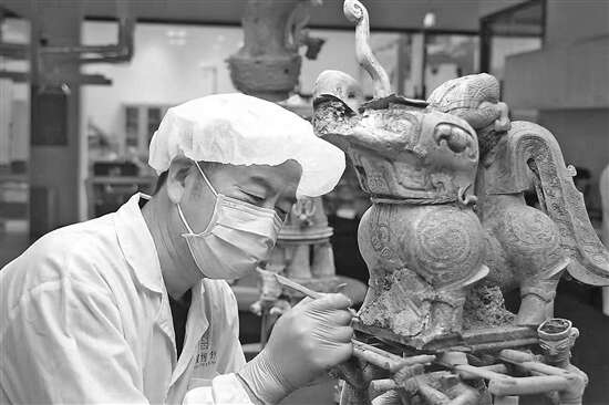 “文物修复是一项孤独的工作,每一件器物的复原都需要修复者静下心、坐得稳。”郭汉中告诉《工人日报》记者,每一件文物的修复,都是一次漫长的摸索,自己仿佛在穿越时空、跨越千年向古人讨教。