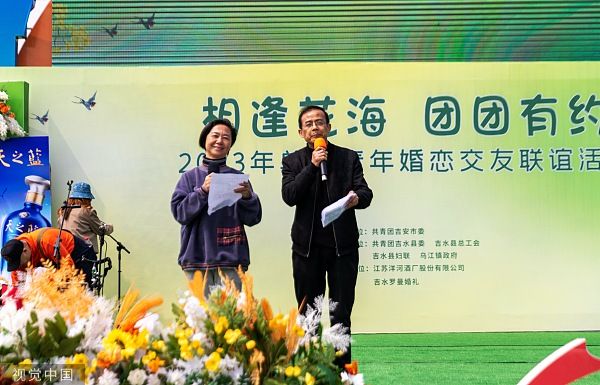 2023年3月12日,江西吉安,“相逢花海 团团有约”2023年吉安市单身青年联谊活动在吉安市吉水县乌江镇千亩油菜花基地举行,来自全市各行各业200余名单身青年相约大自然,共同开启心动之旅,在轻松的户外郊游中寻找属于自己的幸福爱情。