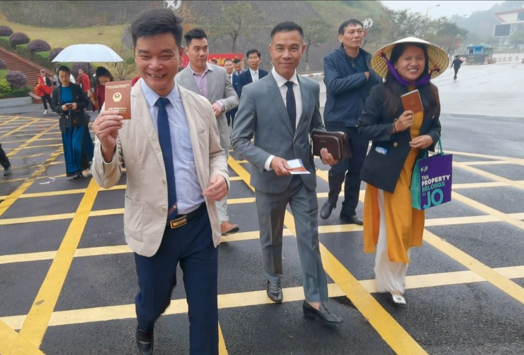 广西凭祥友谊关口岸细雨朦胧,木棉花开得正盛。15时许,中越边境零公里处,19名刚抵达的越南游客正等待入境。