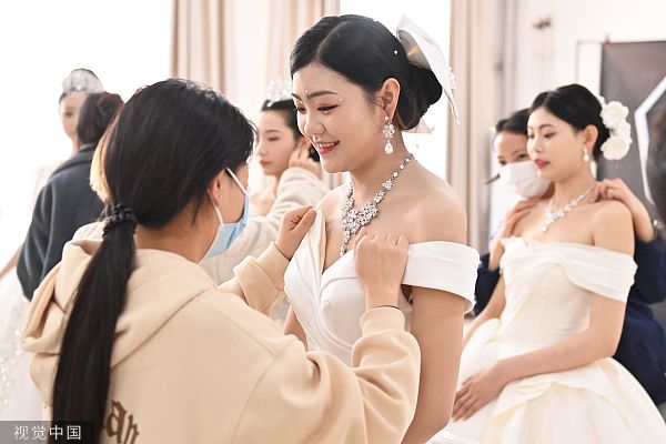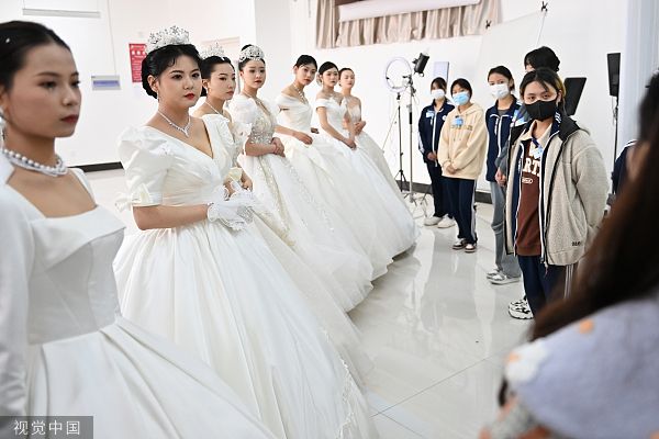2023年3月16日,2023年兰州市中等职业学校技能大赛美容美发比赛在甘肃兰州现代职业学院举行,比赛分为“盘发造型”“晚宴化妆”“新娘化妆盘发造型”等项目。 中新社记者 李亚龙 摄