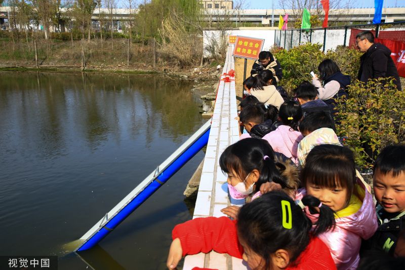 如皋市下原镇山珀小学开展“保护长江生态从孩子做起”主题宣传教育活动。通过增殖放流投放鱼苗、学习《长江保护法》等,从小树立守护长江水源、爱护环境的意识。
