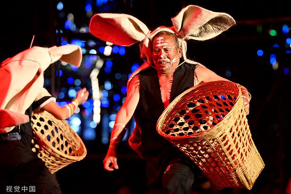 2023年3月17日,云南楚雄,演员在开幕式上带来“老虎笙”表演。当日,以“相约虎乡大地 情牵秘境双柏”为主题的“遇见楚雄——中国·双柏2023虎文化节”在云南省楚雄彝族自治州双柏县开幕。 中新社记者 李嘉娴 摄