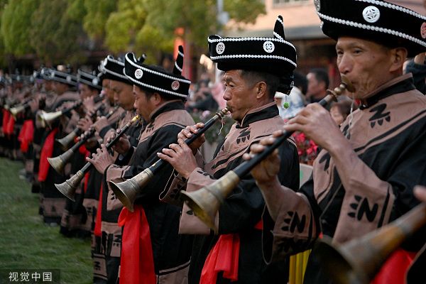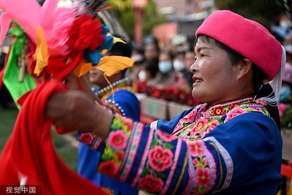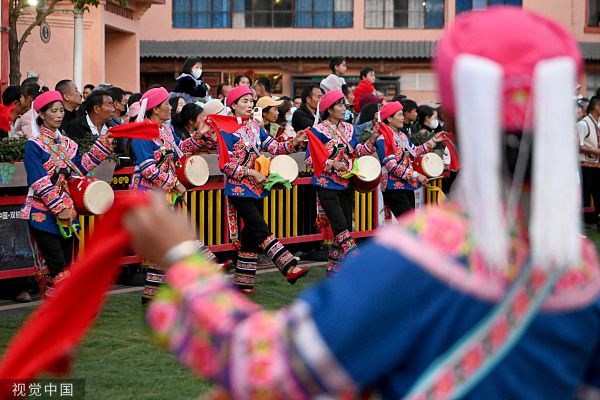 2023年2023年3月17日,云南楚雄,云南楚雄,演员在街头表演。当日,以“相约虎乡大地 情牵秘境双柏”为主题的“遇见楚雄——中国·双柏2023虎文化节”在云南省楚雄彝族自治州双柏县开幕。 中新社记者 李嘉娴 摄