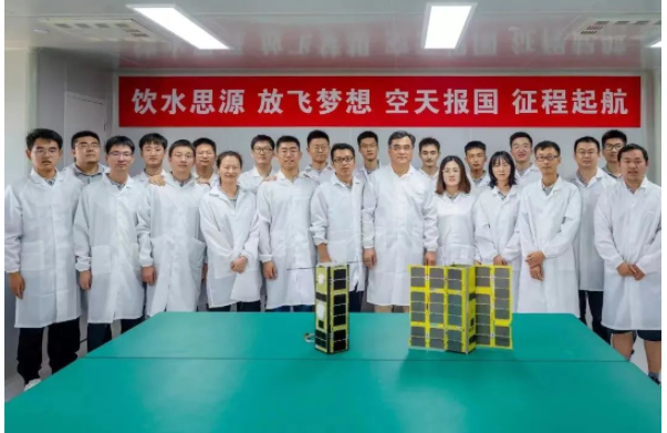 小卫星出征仪式上的合影(前排左二为康泽禹)
