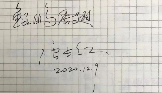 2020年12月,在“运-20”总师唐长红院士的座谈会上,康泽禹有幸与唐院士面对面交流。座谈会后,唐院士在他的笔记本上写了“鲲鹏展翅”四个字,这使他受到了极大的勉励,更加坚定了自己从事航空航天事业的信心。