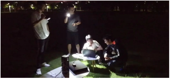 ▲ 康泽禹(右二)和同学们在对星上磁强计进行校准