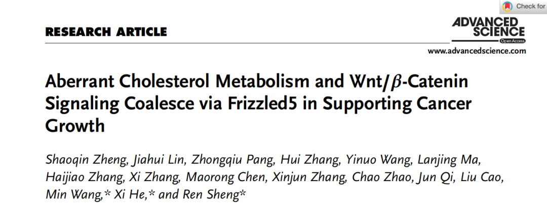2022年,学院师生迎来学术硕果的大丰收。盛韧教授课题组的研究成果在线发表于国际顶尖期刊Advanced Science上。学院2019级直博生郑少钦为第一作者,盛韧教授为通讯作者。研究首次揭示了胆固醇与重要受体蛋白Frizzled的相互作用与蛋白棕榈酰化的分子机制,首次发现了25-羟基胆固醇能够抑制胰腺癌的生长与发展,在肿瘤基础研究和临床转化领域实现重要突破,为数百万的胰腺癌患者提供了新的治疗思路和方向。