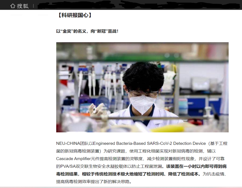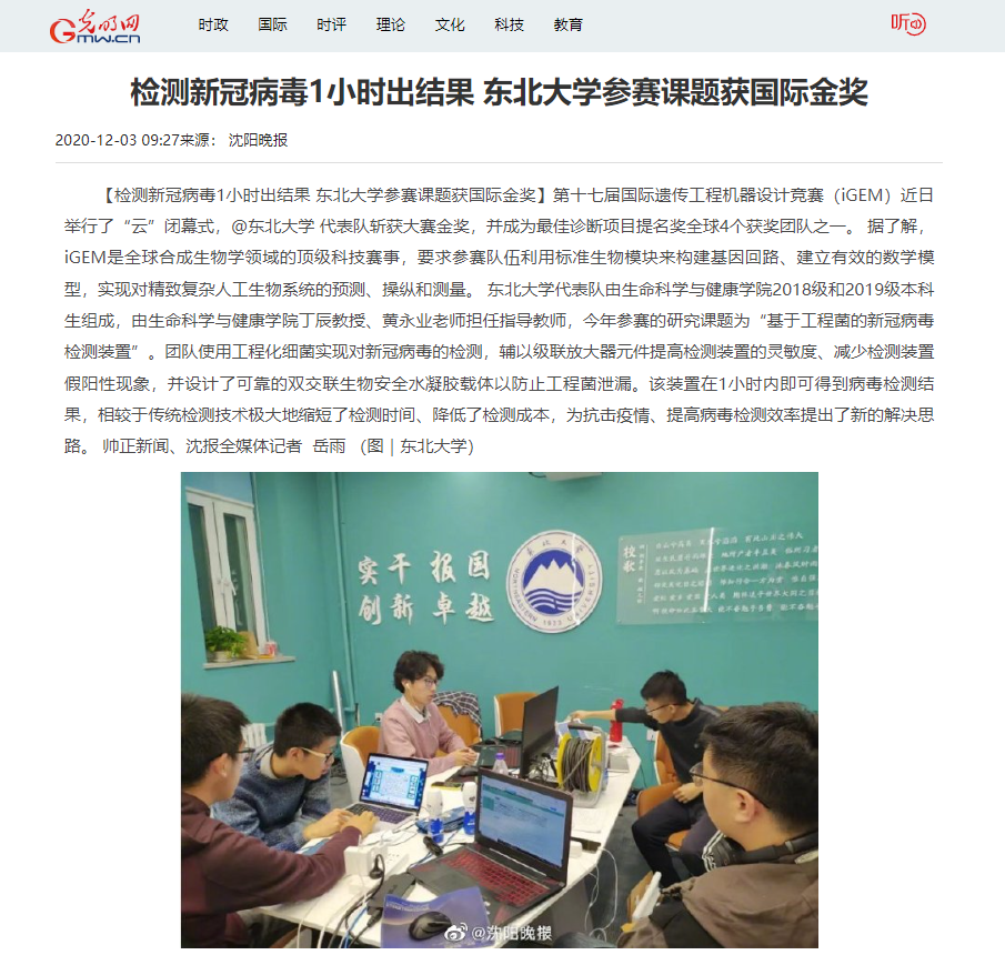 学院代表东北大学组队参加全球合成生物学领域国际大学生顶级科技赛事——国际遗传工程机器设计竞赛(简称iGEM),累计获得全球金奖4次,银奖2次,铜奖2次,全球单项提名奖2次,光明日报和学习强国多次报道团队事迹。